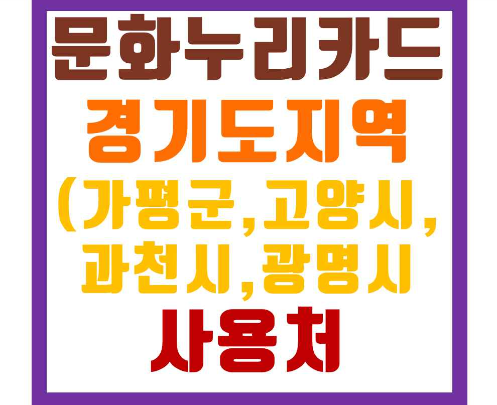 오늘은 경기도 지역 ( 가평, 고양, 과천, 광명 ) 문화누리카드 사용처에 대해 알아보았습니다.
