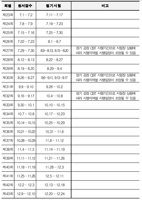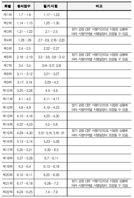 - 접수기간은 전국 동일하지만 시험일정은 차이가 있으니 참고하시기 바랍니다.